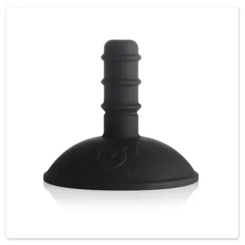 Simply remove the black silicone plug located in the base of the dildo and fully insert the ribbed post of the Suction Cup into the hole in the base.