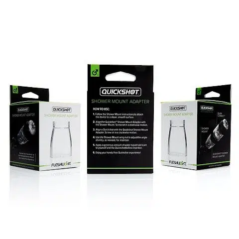 Prayers answered: the Fleshlight QUICKSHOT Shower Mount Adaptor attaches your QUICKSHOT to the Fleshlight Shower Mount so you can dive into hassle-free, hands-free fun.
